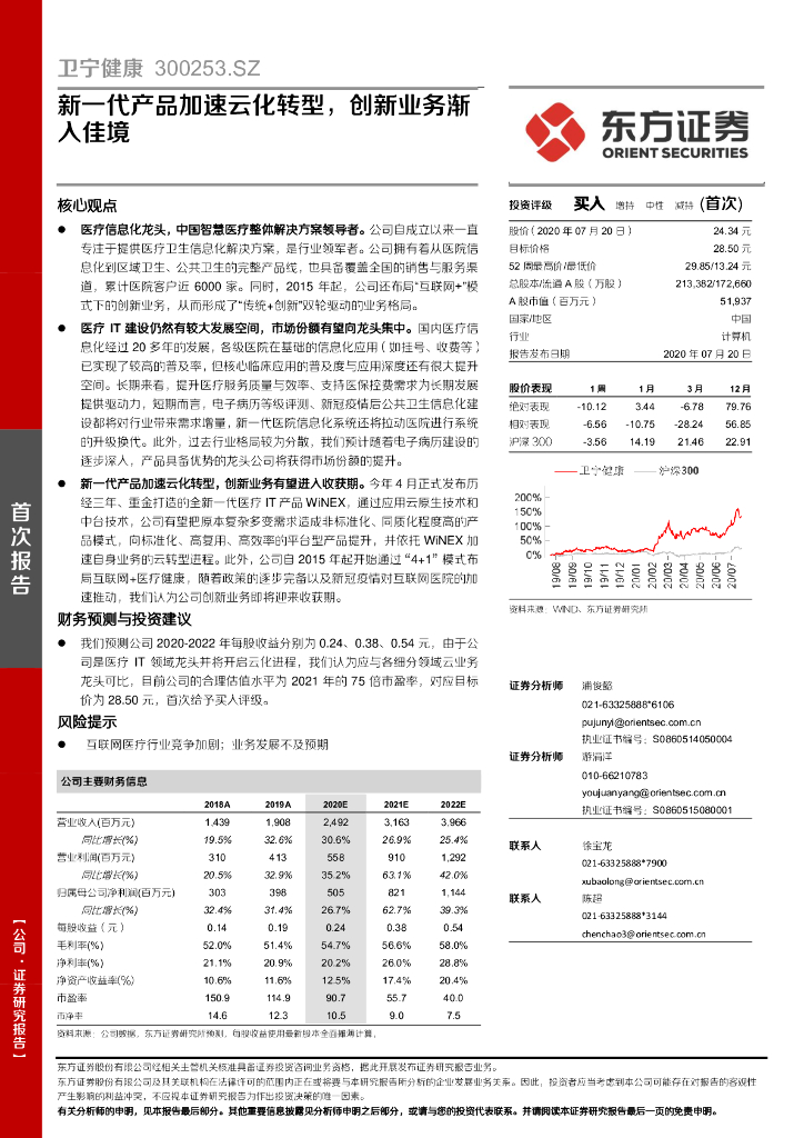 东方证券:卫宁健康(300253)-新一代产品加速云化转型,创新业务渐入佳境.pdf