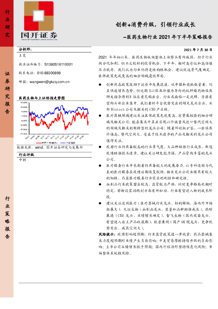 国开证券:医药生物行业2021年下半年策略报告:创新+消费升级,引领行业成长.pdf