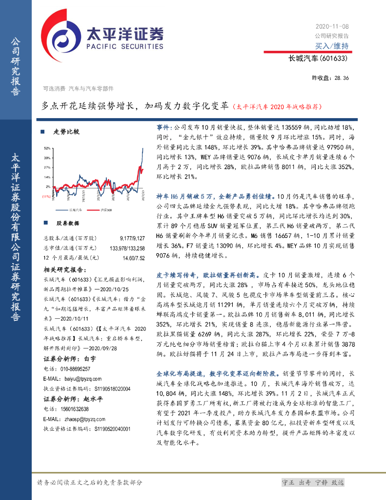 太平洋证券:长城汽车(601633)-多点开花延续强势增长,加码发力数字化变革(太平洋汽车2020年战略推荐).pdf