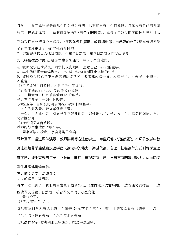 新人教版一年级上册语文第4单元教案、教学反思(含园地).doc