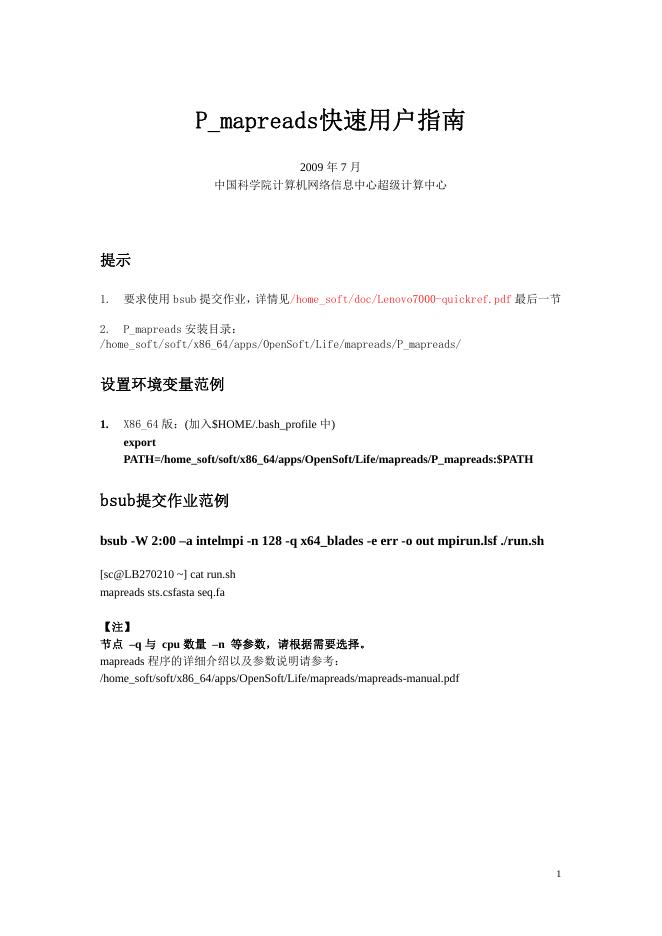 中国科学院计算机网络信息中心超级计算中心 P_mapreads 快速用户指南.pdf