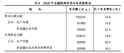 年末全部金融机构本外币各项存款余额152234亿元,比上年末增长15.9%,其中人民币存款余额增长15.1%。住户本外币存款余额61569亿元,增长14.6%。全部金融机构本外币各项贷款余额143612亿元,增长18.0%,其中人民币贷款余额增长18.2%。主要农村金融机构(农村信用社、农村合作银行、农村商业银行)人民币贷款余额20233亿元,比上年末增加3761亿元。