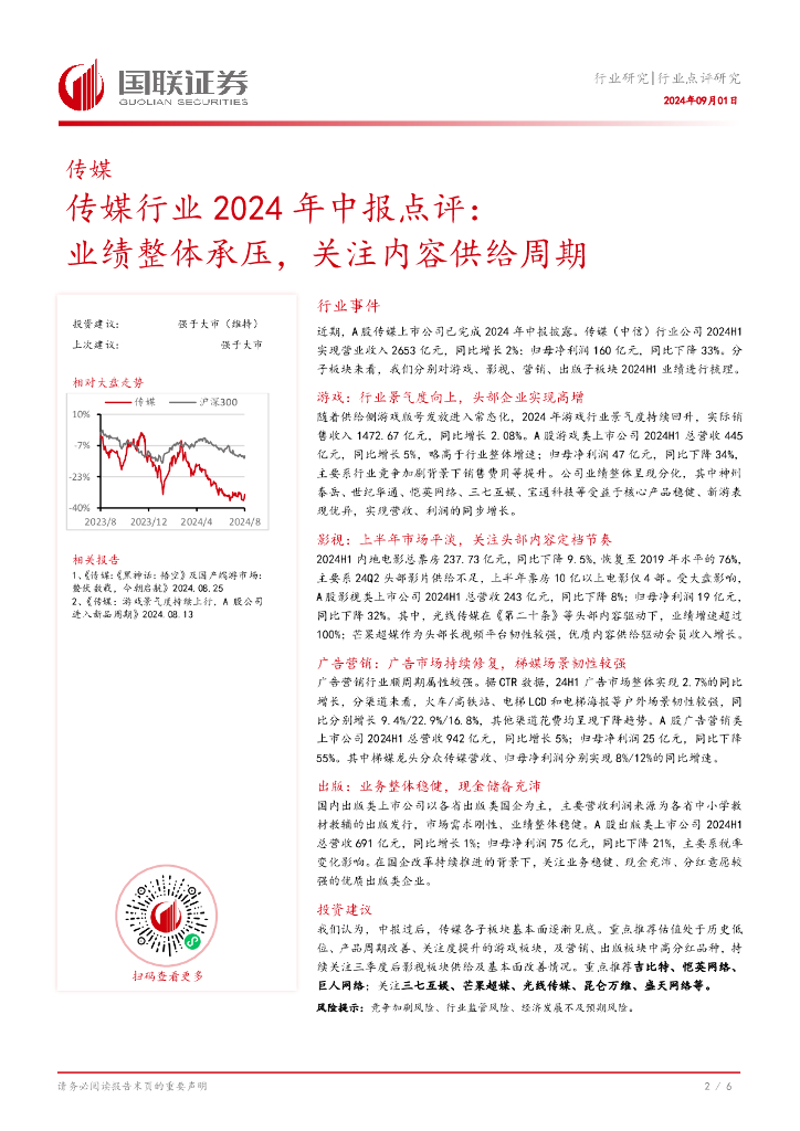 国联证券:传媒行业2024年中报点评:业绩整体承压,关注内容供给周期.pdf