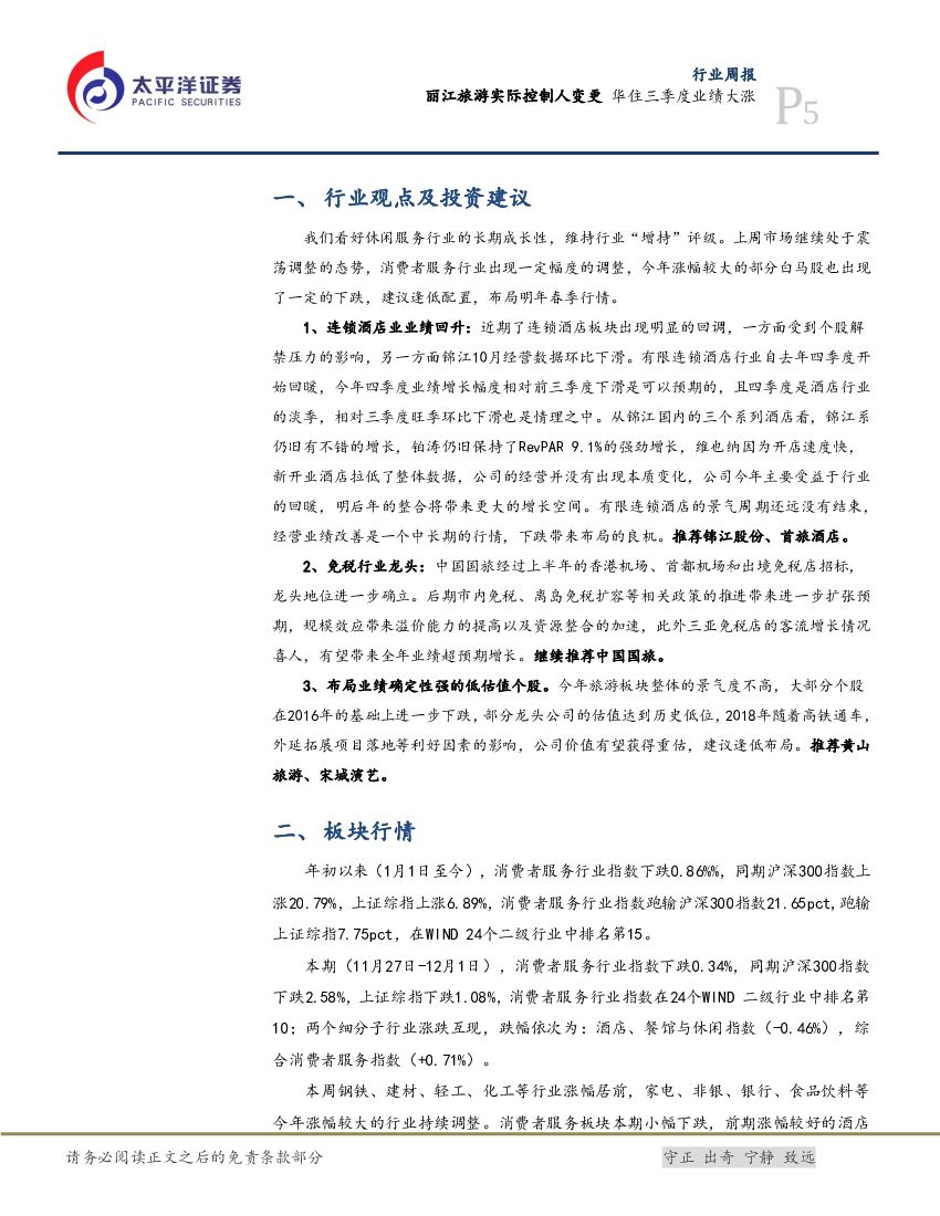 太平洋证券:消费者服务Ⅱ行业周报:丽江旅游实际控制人变更 华住三季度业绩大涨.pdf