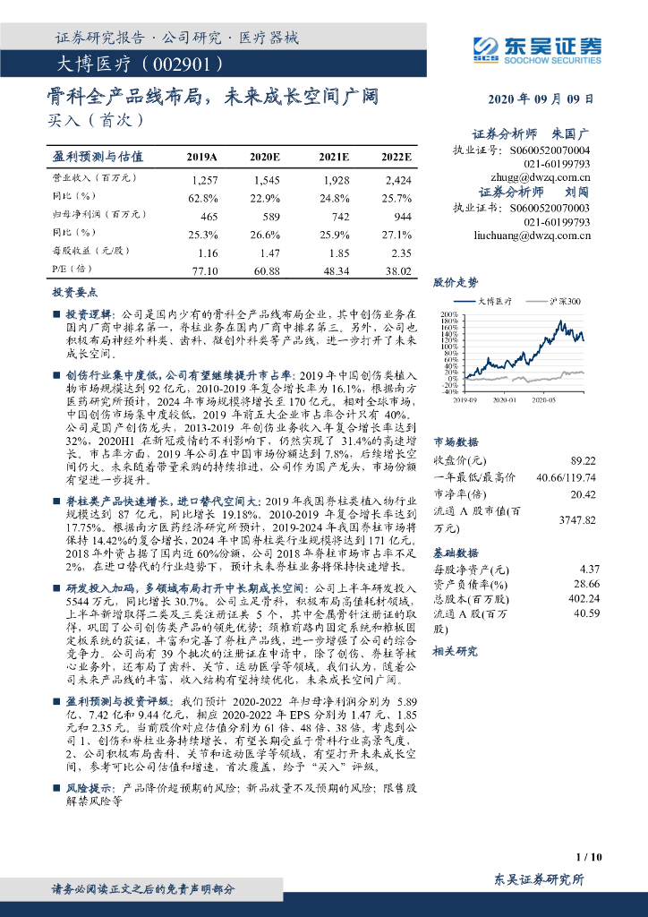 东吴证券:大博医疗(002901)-骨科全产品线布局,未来成长空间广阔.pdf