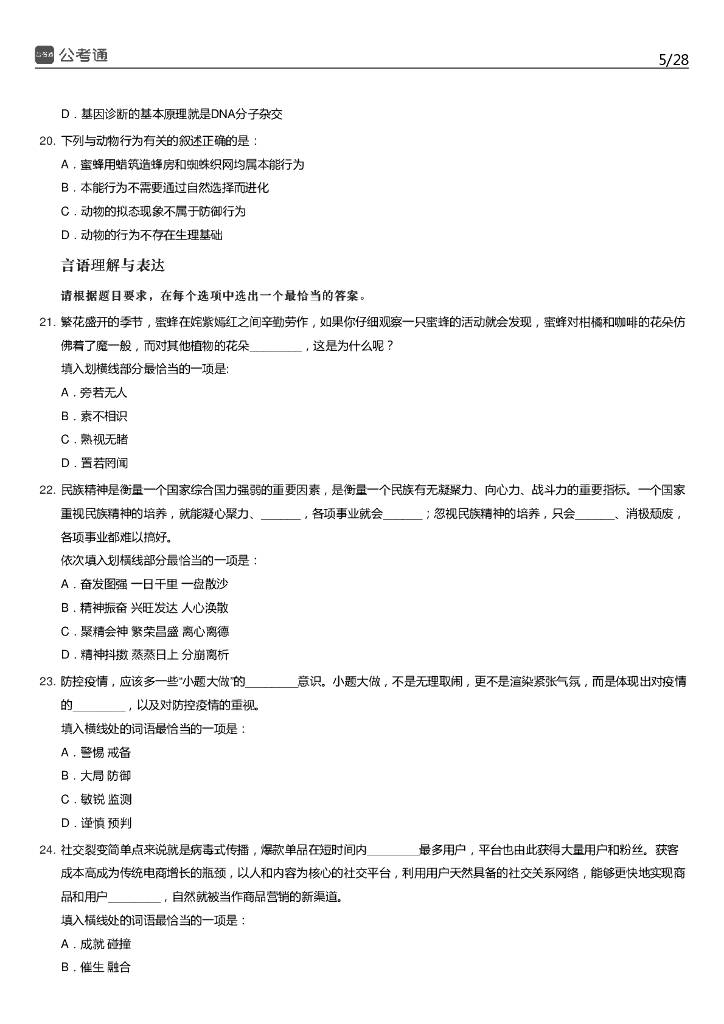 2020年天津公务员考试行测真题及答案.pdf