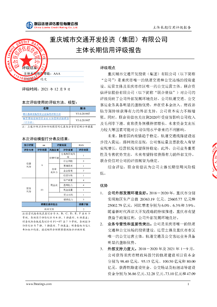 联合资信:重庆城市交通开发投资(集团)有限公司主体信用评级报告及跟踪评级安排.pdf
