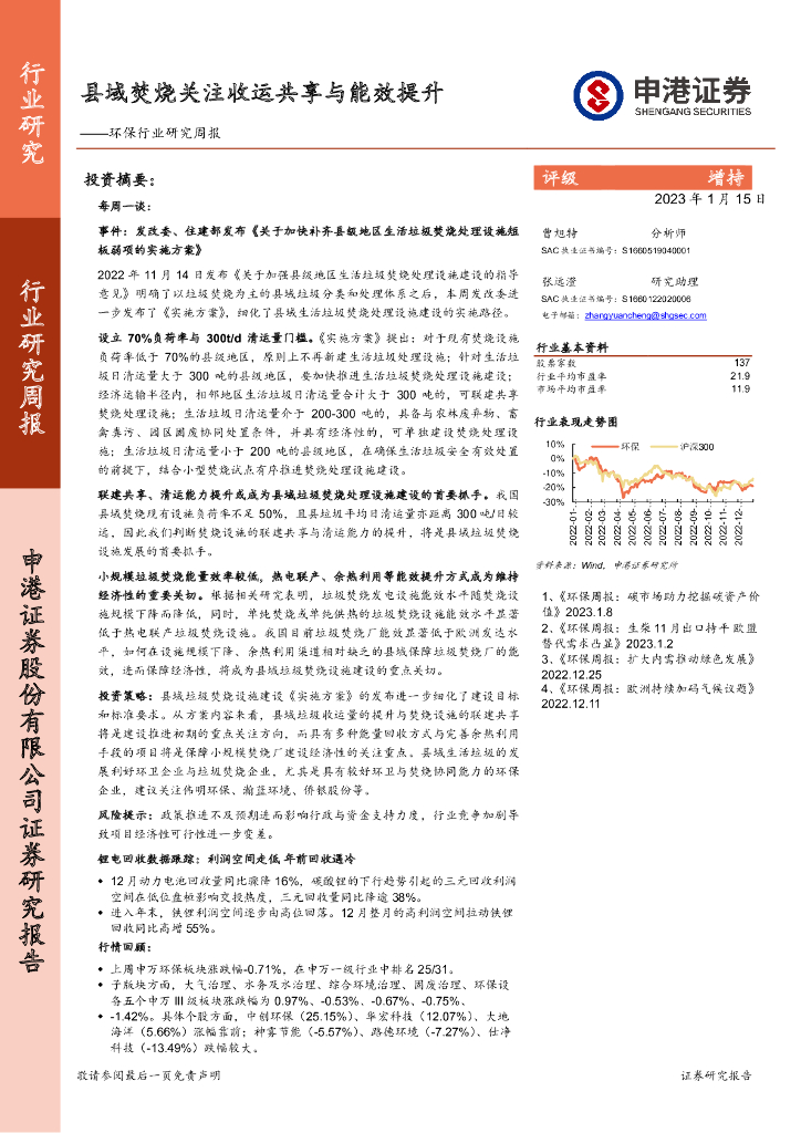 申港证券:环保行业研究周报:县域焚烧关注收运共享与能效提升.pdf