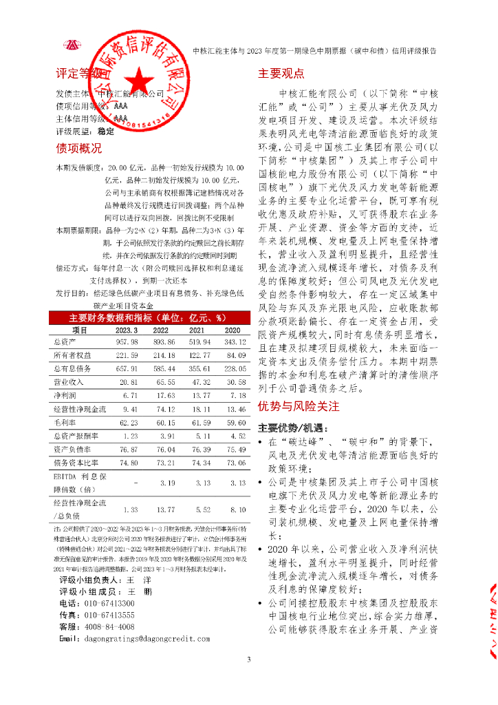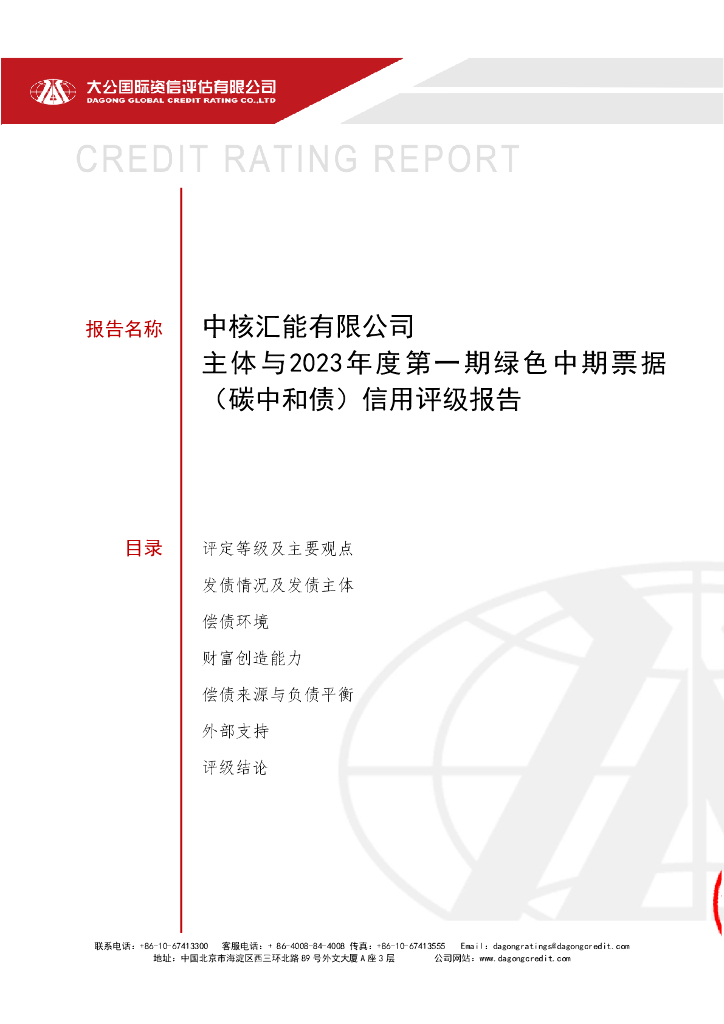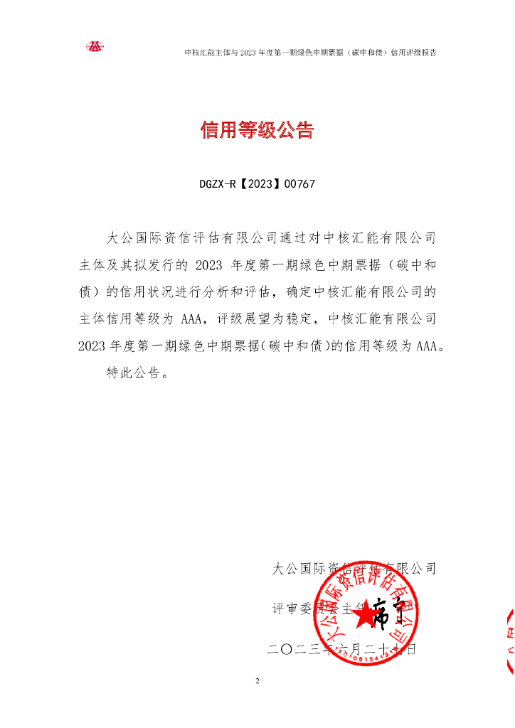 大公:中核汇能有限公司主体与2023年度第一期绿色中期票据(碳中和债)信用评级报告.pdf