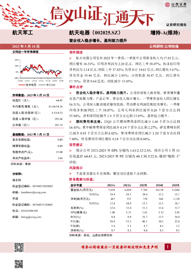 山西证券:航天电器(002025)-营业收入稳步增长,盈利能力提升.pdf