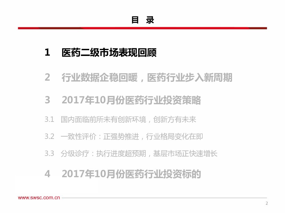 西南证券:2017年10月医药投资策略:重点推荐创新药、一致性评价、分级诊疗板块.pdf