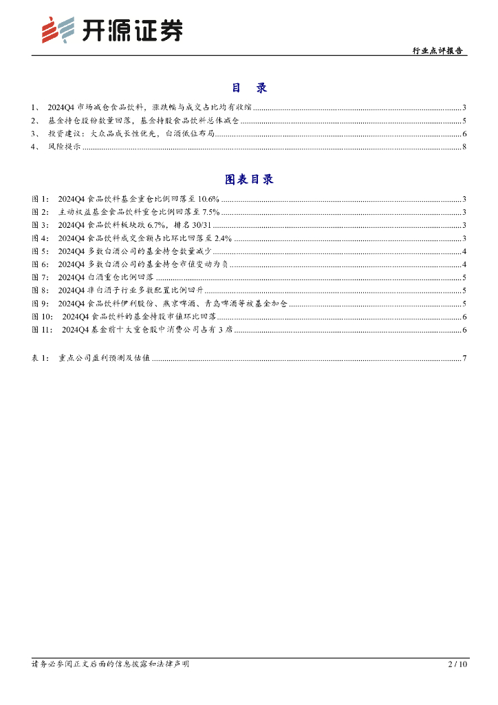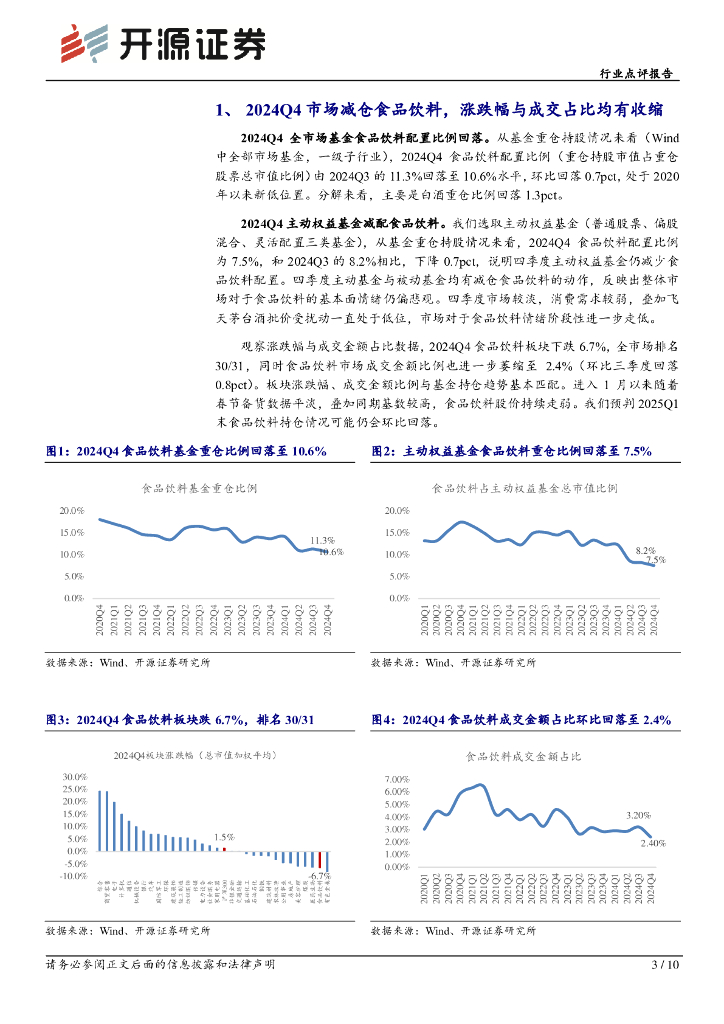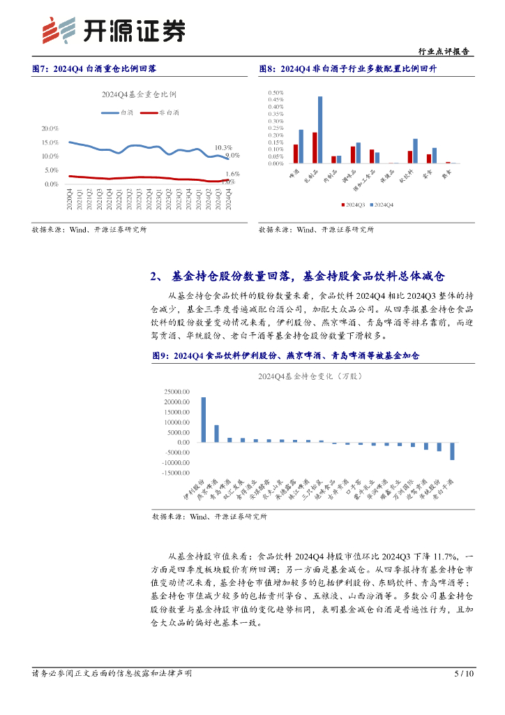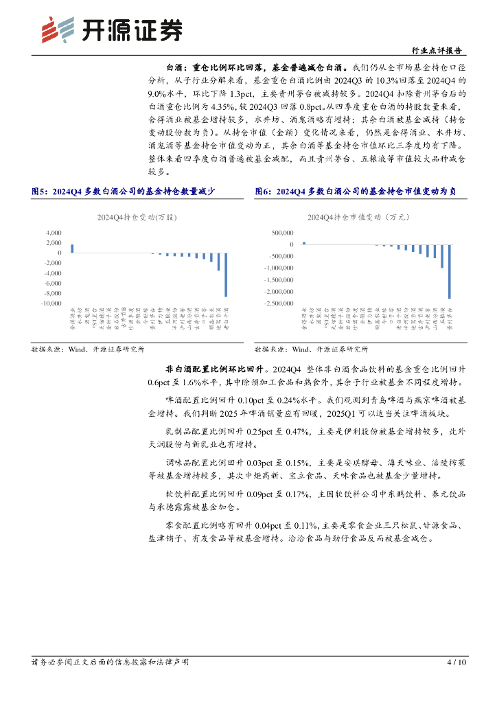 开源证券:食品饮料行业点评报告:2024Q4食品饮料仓位回落,白酒减配较多.pdf