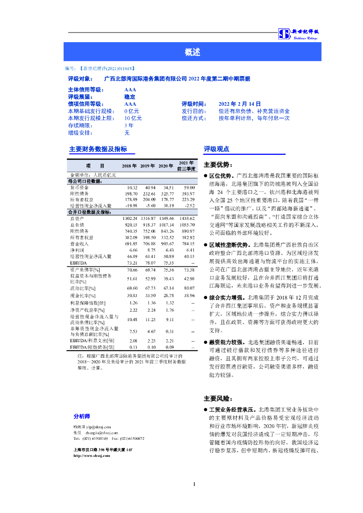 新世纪:广西北部湾国际港务集团有限公司2022年度第二期中期票据信用评级报告.pdf