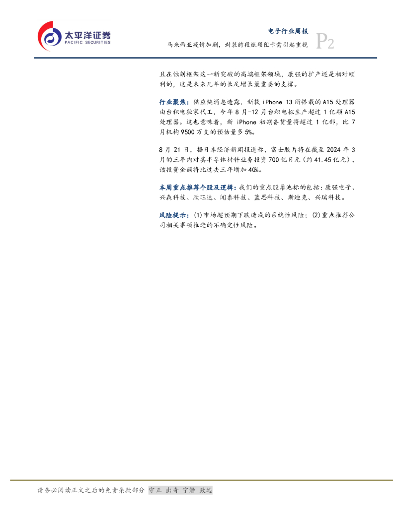 太平洋证券:电子设备、仪器和元件行业周报:马来西亚疫情加剧,封装前段瓶颈阻卡需引起重视.pdf