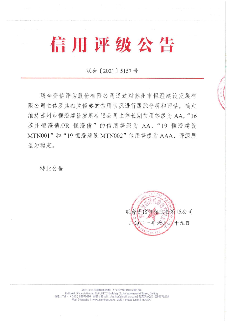 联合资信:苏州市恒澄建设发展有限公司2021年跟踪评级报告.pdf