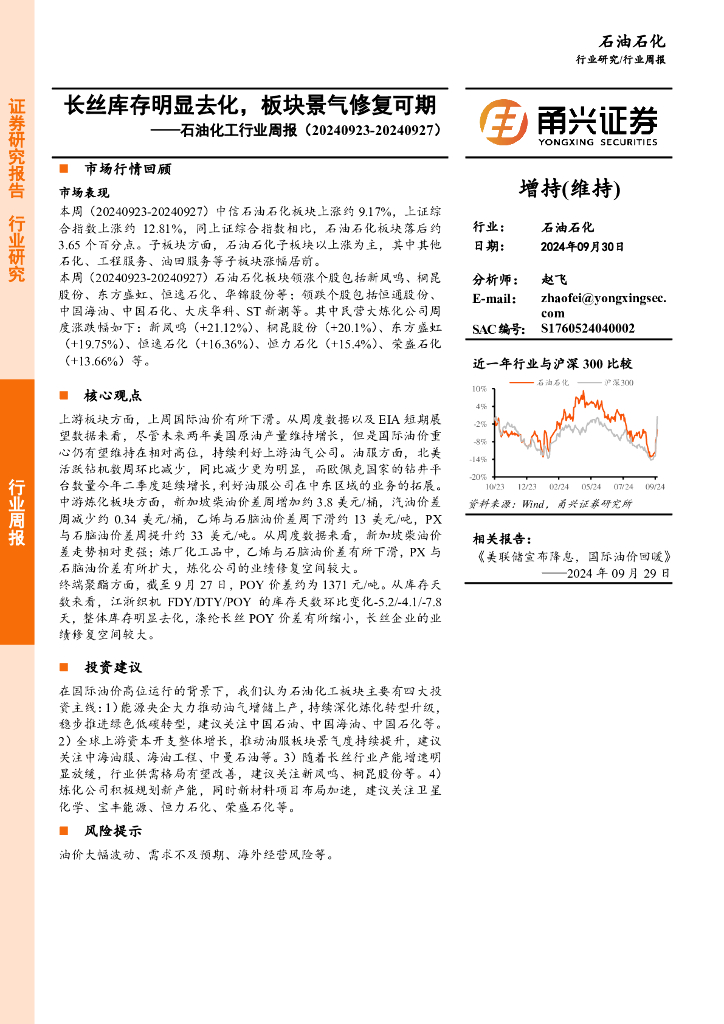 甬兴证券:石油化工行业周报:长丝库存明显去化,板块景气修复可期.pdf