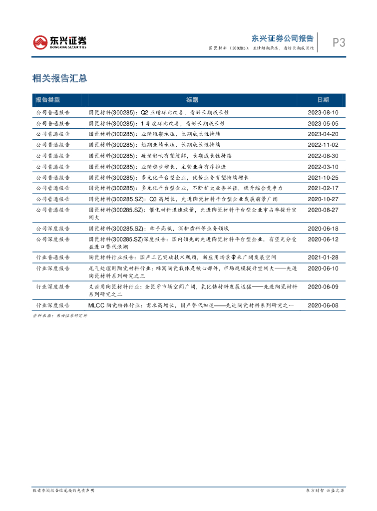 东兴证券:国瓷材料(300285)-业绩短期承压,看好长期成长性.pdf