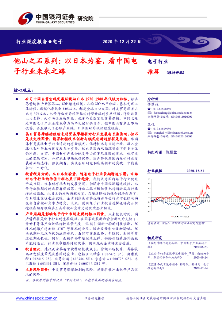中国银河:电子行业:他山之石系列:以日本为鉴,看中国电子行业未来之路.pdf