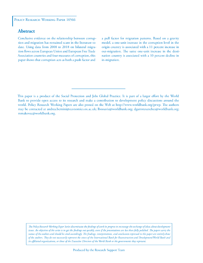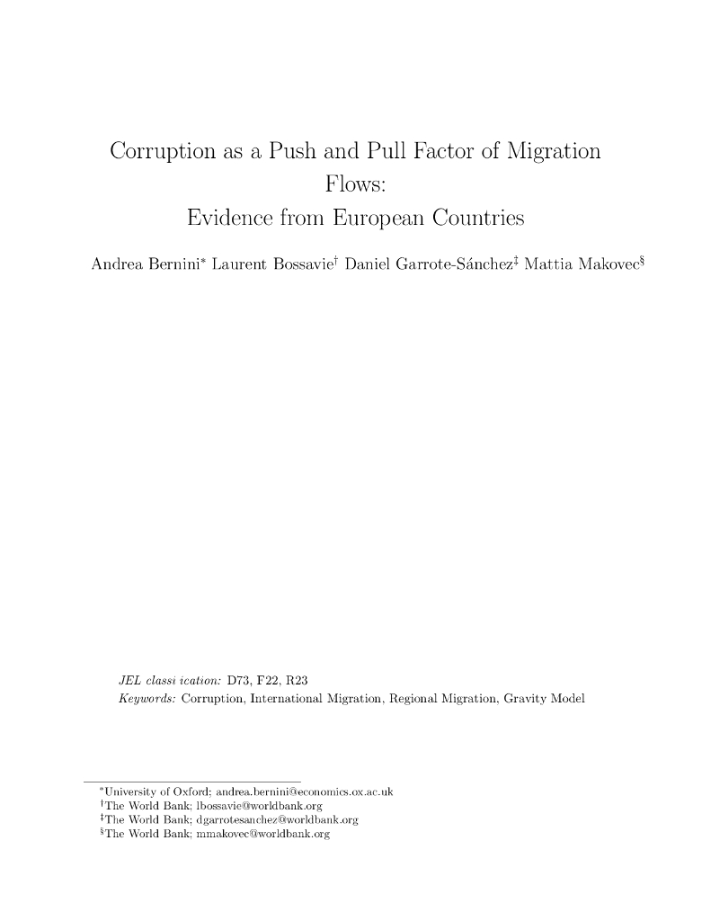 世界银行:腐败作为移民流动的推动和拉动因素:来自欧洲国家的证据(英文版).pdf