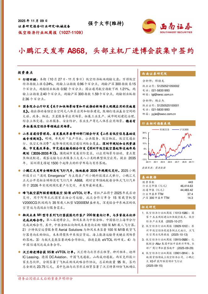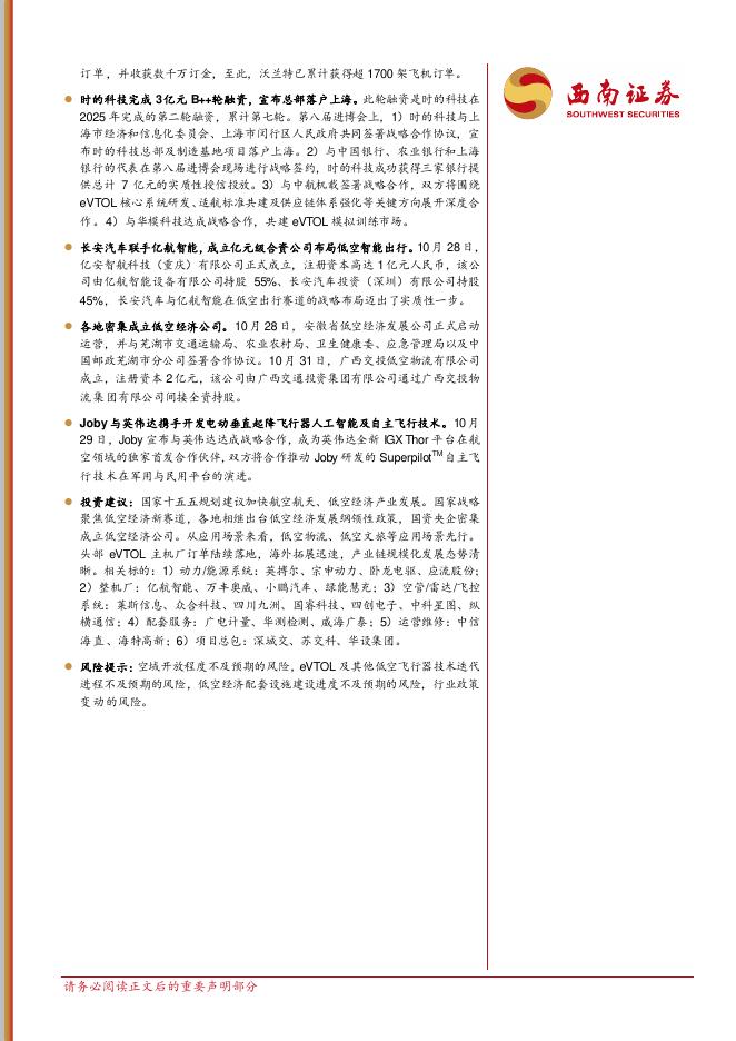 西南证券:低空经济行业双周报:小鹏汇天发布A868,头部主机厂进博会获集中签约.pdf