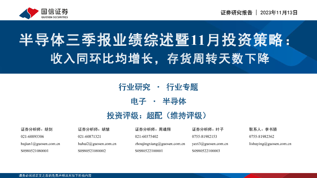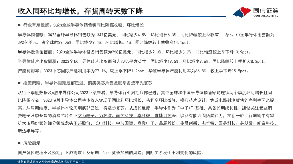 国信证券:半导体三季报业绩综述暨11月投资策略:收入同环比均增长,存货周转天数下降.pdf