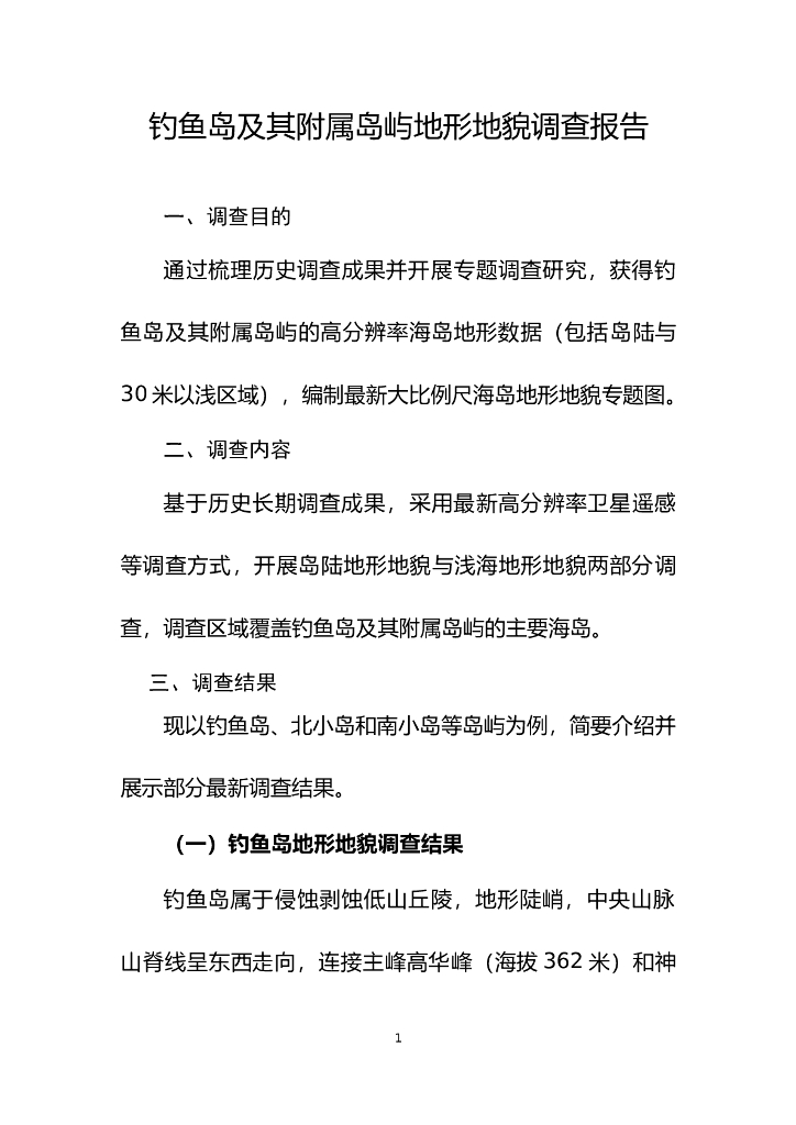 自然资源部:钓鱼岛及其附属岛屿地形地貌调查报告.doc