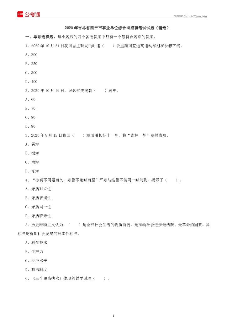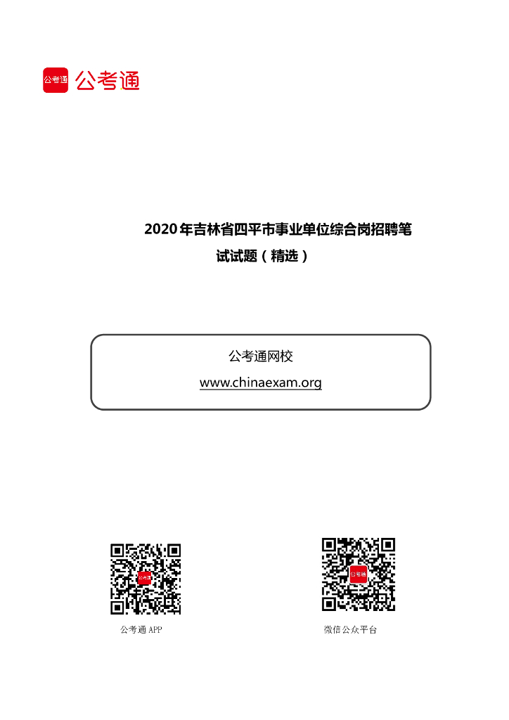 2020年吉林省四平市事业单位综合岗招聘笔试试题(精选).pdf