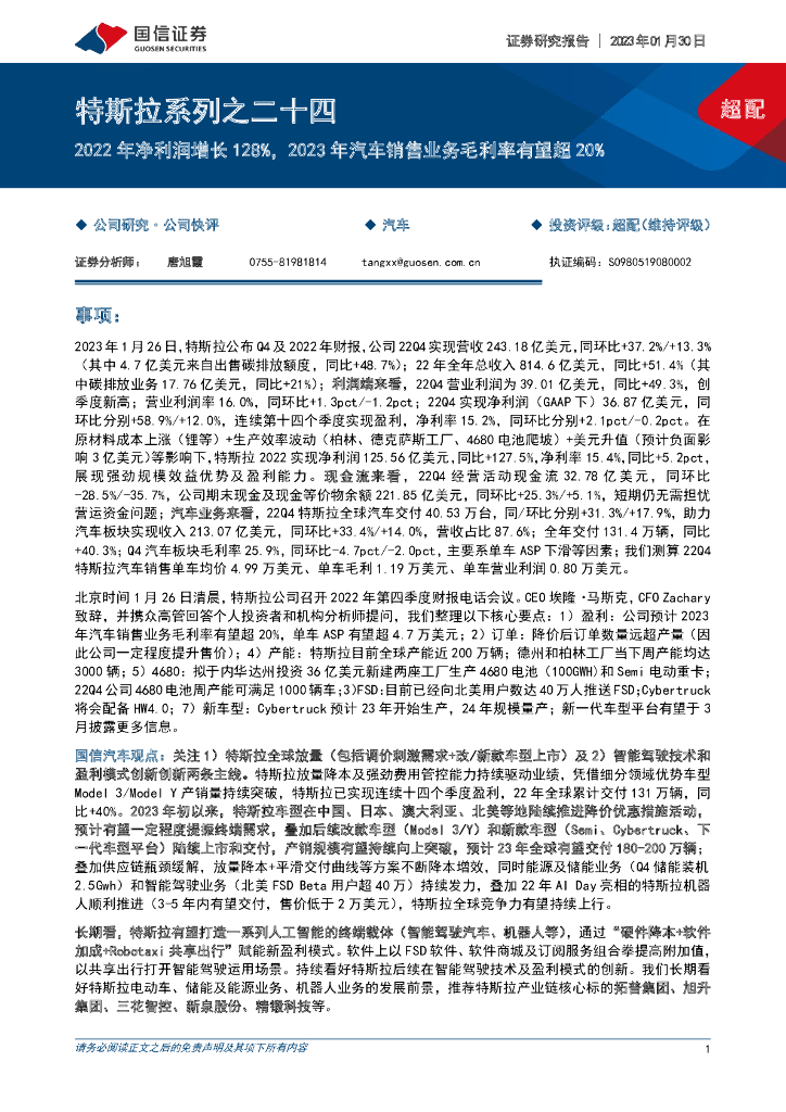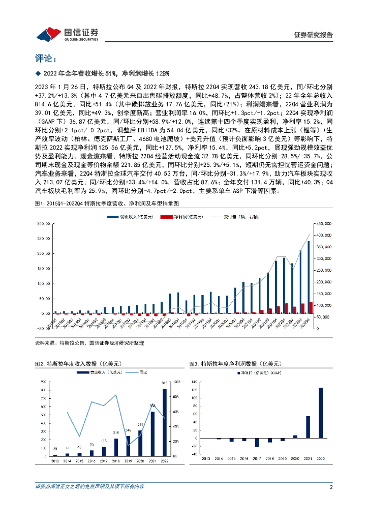 国信证券:汽车:特斯拉系列之二十四-2022年净利润增长128%,2023年汽车销售业务毛利率有望超20%.pdf