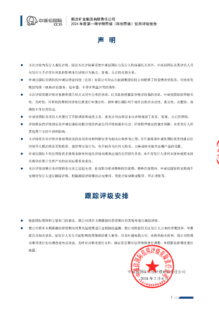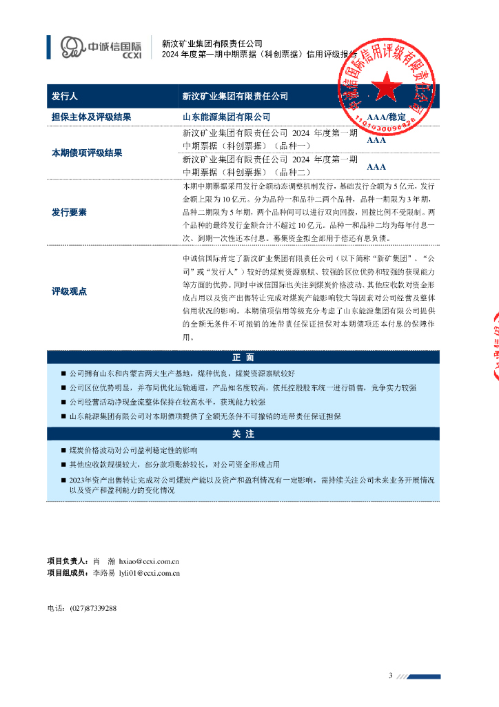 中诚信:新汶矿业集团有限责任公司2024年度第一期中期票据(科创票据)信用评级报告.pdf