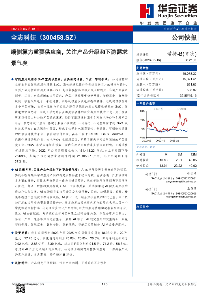 华金证券:全志科技(300458)-端侧算力重要供应商,关注产品升级和下游需求景气度.pdf