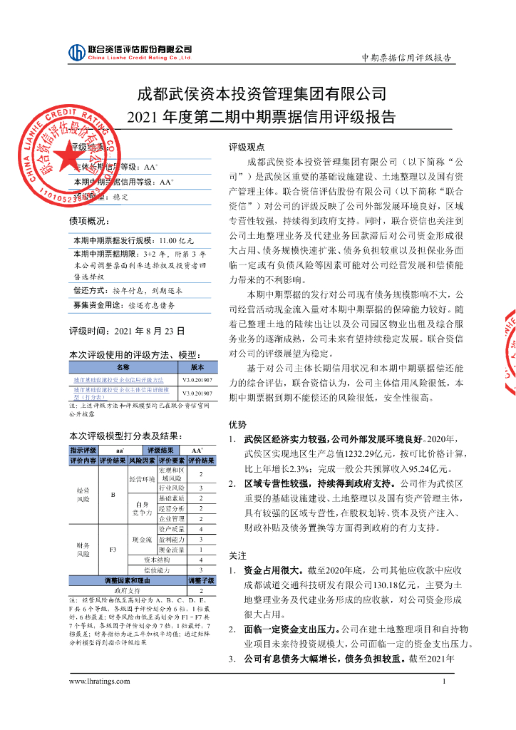 联合资信:成都武侯资本投资管理集团有限公司2021年度第二期中期票据信用评级报告.pdf