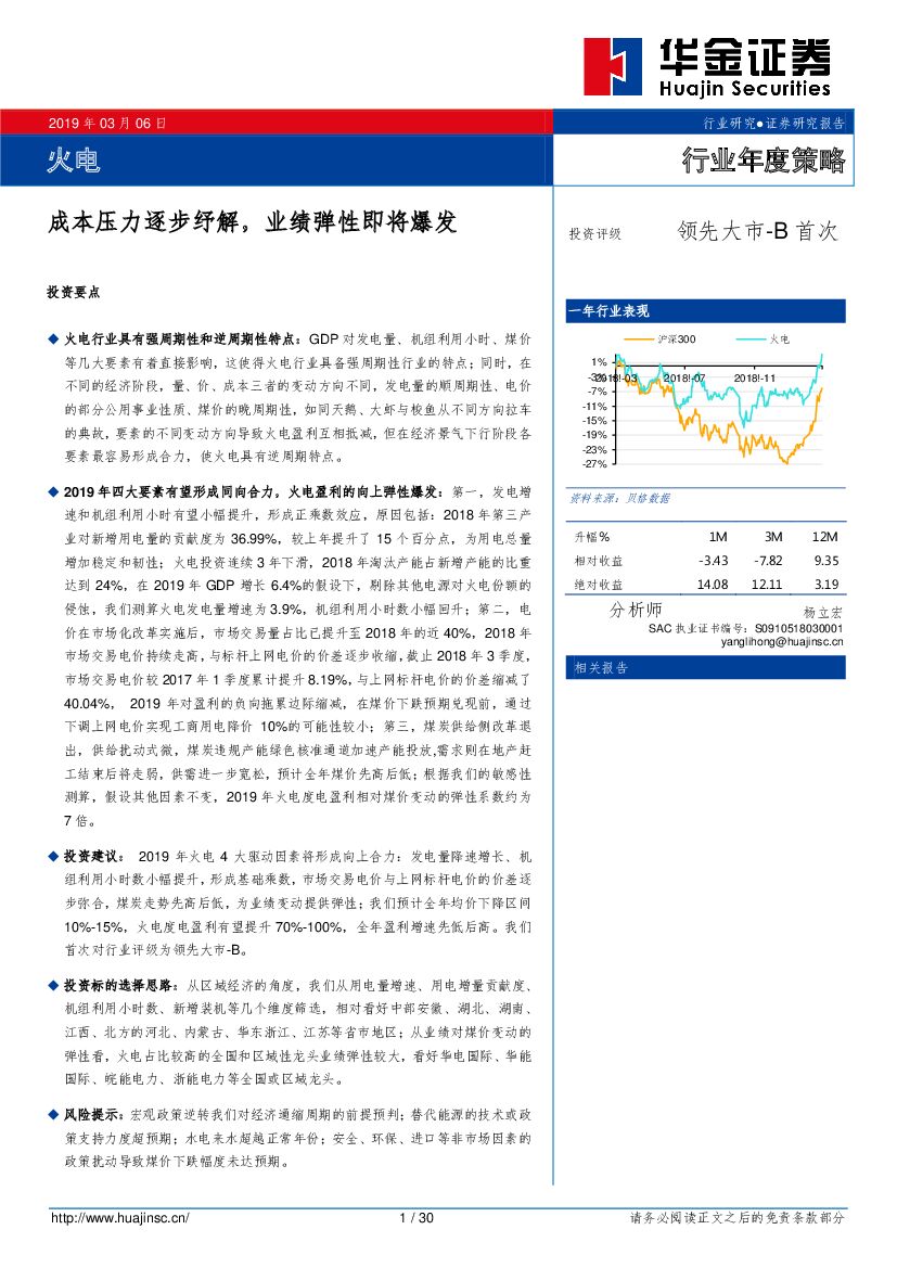 华金证券:火电行业年度策略:成本压力逐步纾解,业绩弹性即将爆发.pdf