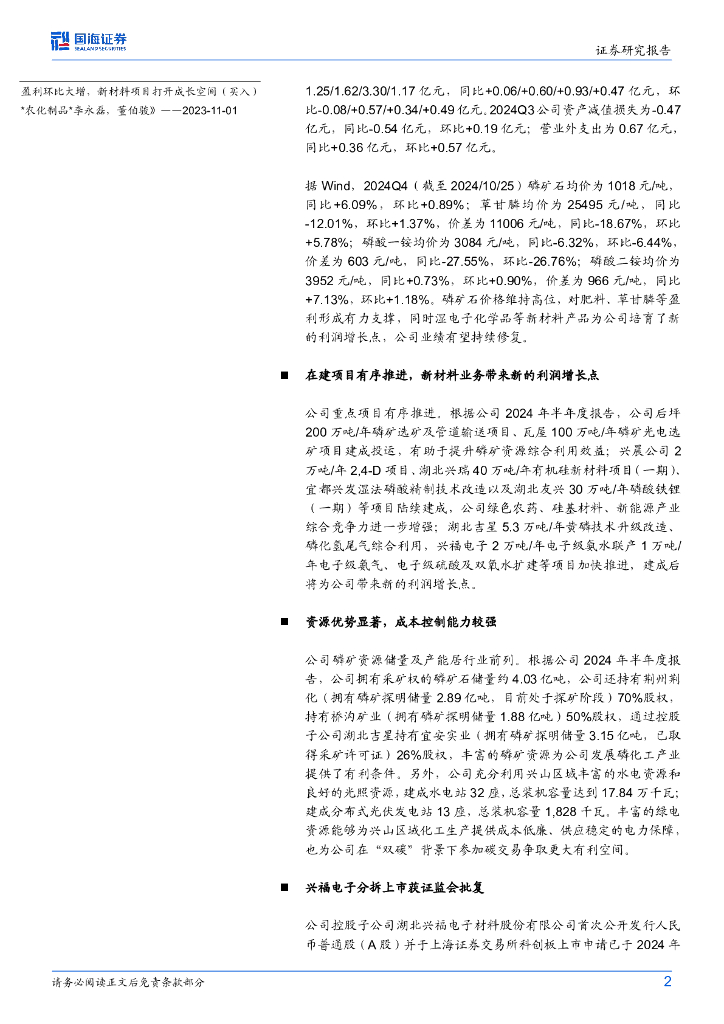 国海证券:兴发集团(600141)-2024年三季报点评:2024Q3业绩同比大增,磷矿资源优势显著.pdf