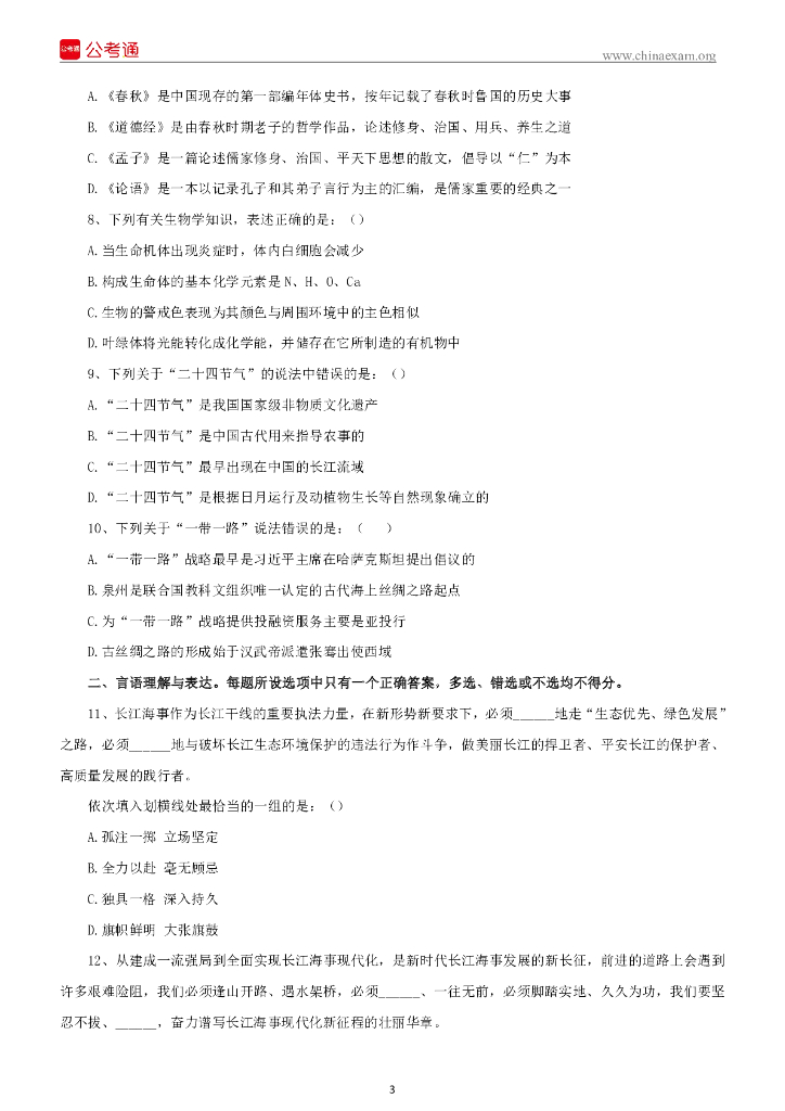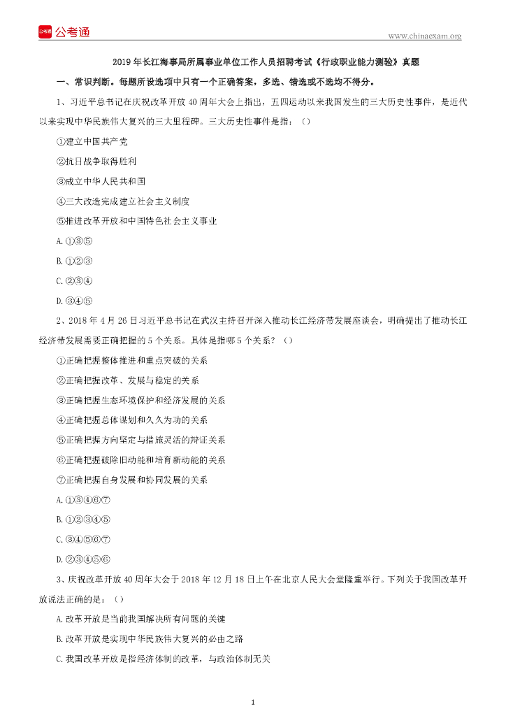 2019年长江海事局所属事业单位考试《行政职业能力测验》真题.pdf