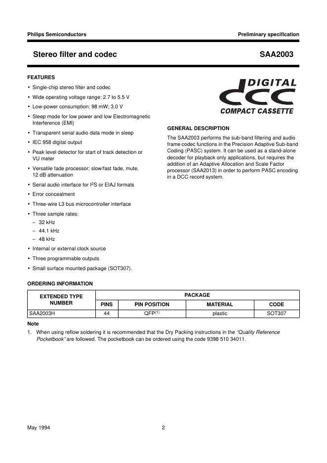 philips SAA2003 Stereo filter and codec 数据手册.pdf