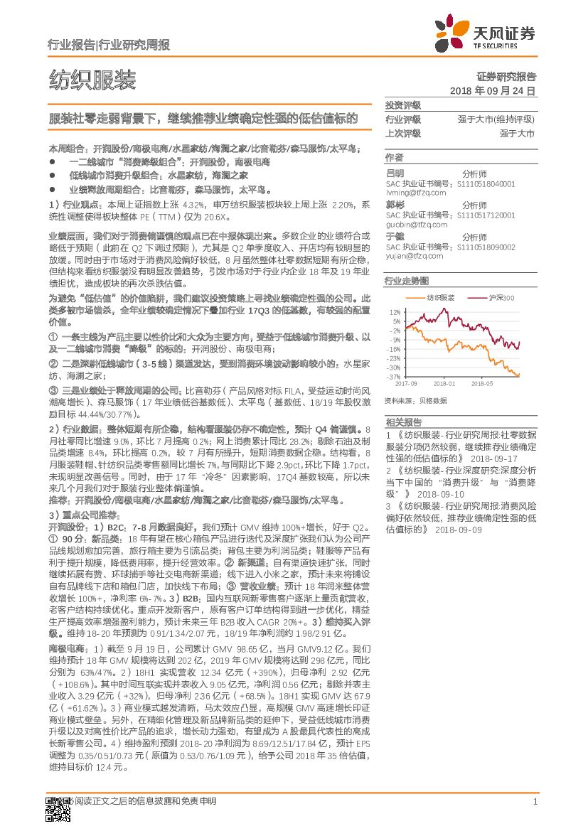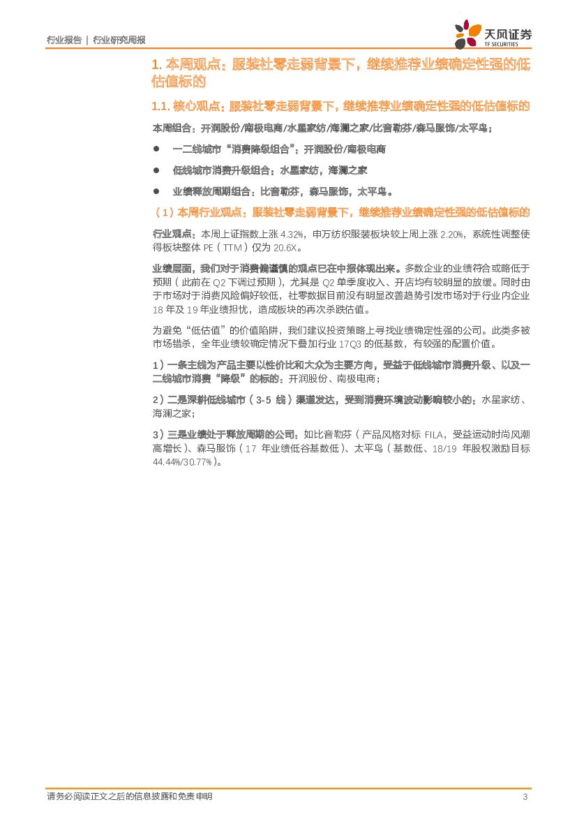 天风证券:纺织服装行业研究周报:服装社零走弱背景下,继续推荐业绩确定性强的低估值标的.pdf