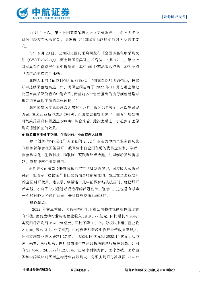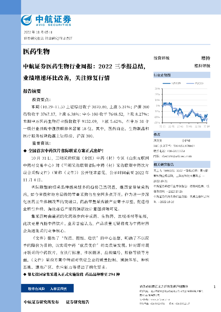 中航证券:医药生物行业周报:2022三季报总结,业绩增速环比改善,关注修复行情.pdf