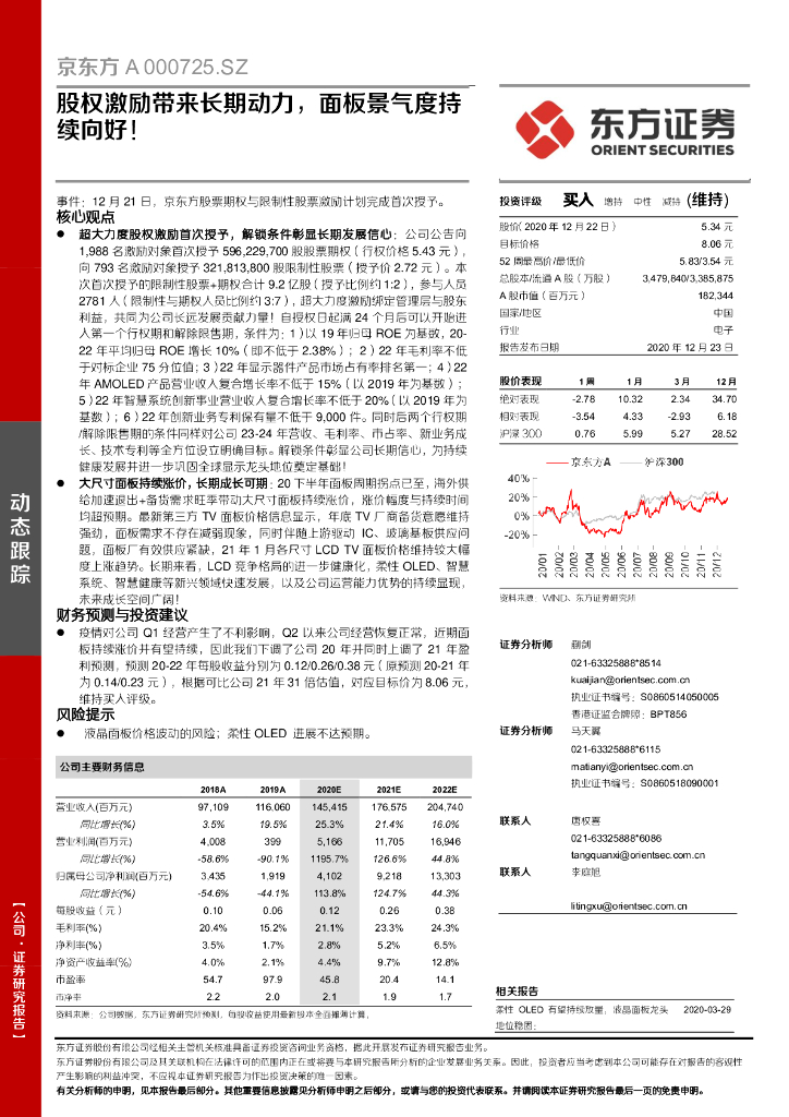 东方证券:京东方A(000725)-股权激励带来长期动力,面板景气度持续向好!.pdf