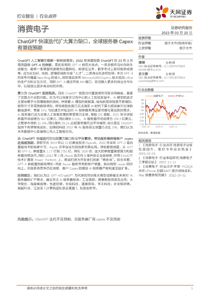 天风证券:消费电子:ChatGPT快速迭代扩大算力缺口,全球服务器Capex有望超预期.pdf