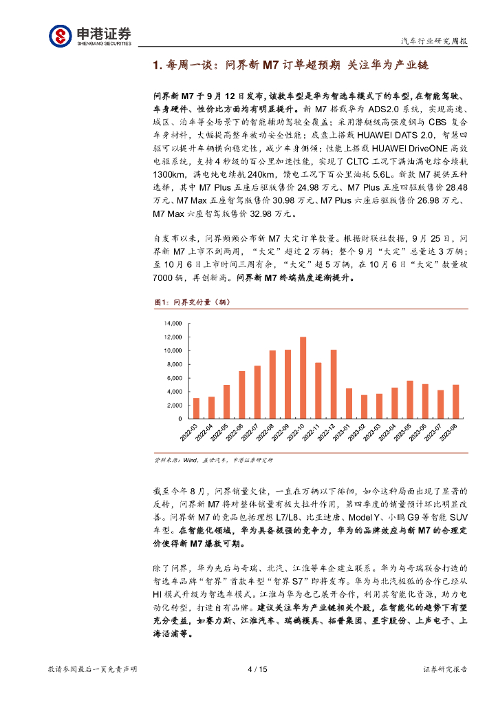 申港证券:汽车行业研究周报:问界新M7订单超预期 关注华为产业链.pdf