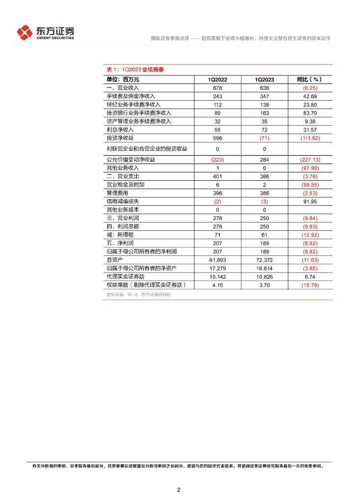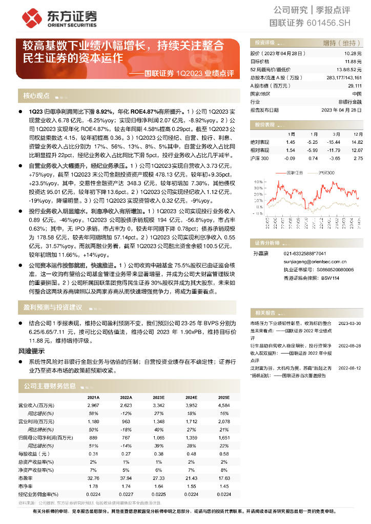 东方证券:国联证券1Q2023业绩点评:较高基数下业绩小幅增长,持续关注整合民生证券的资本运作.pdf