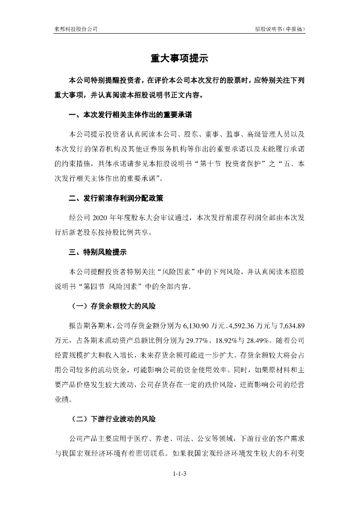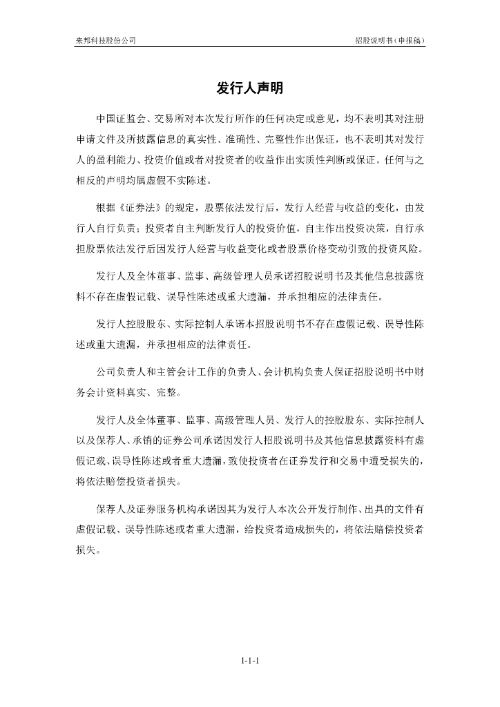 来邦科技股份公司深交所创业板IPO上市招股说明书.pdf