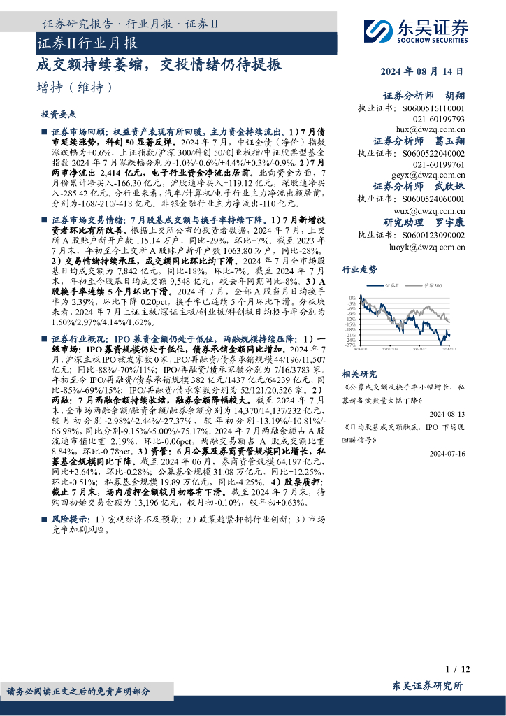 东吴证券:证券Ⅱ行业月报:成交额持续萎缩,交投情绪仍待提振.pdf