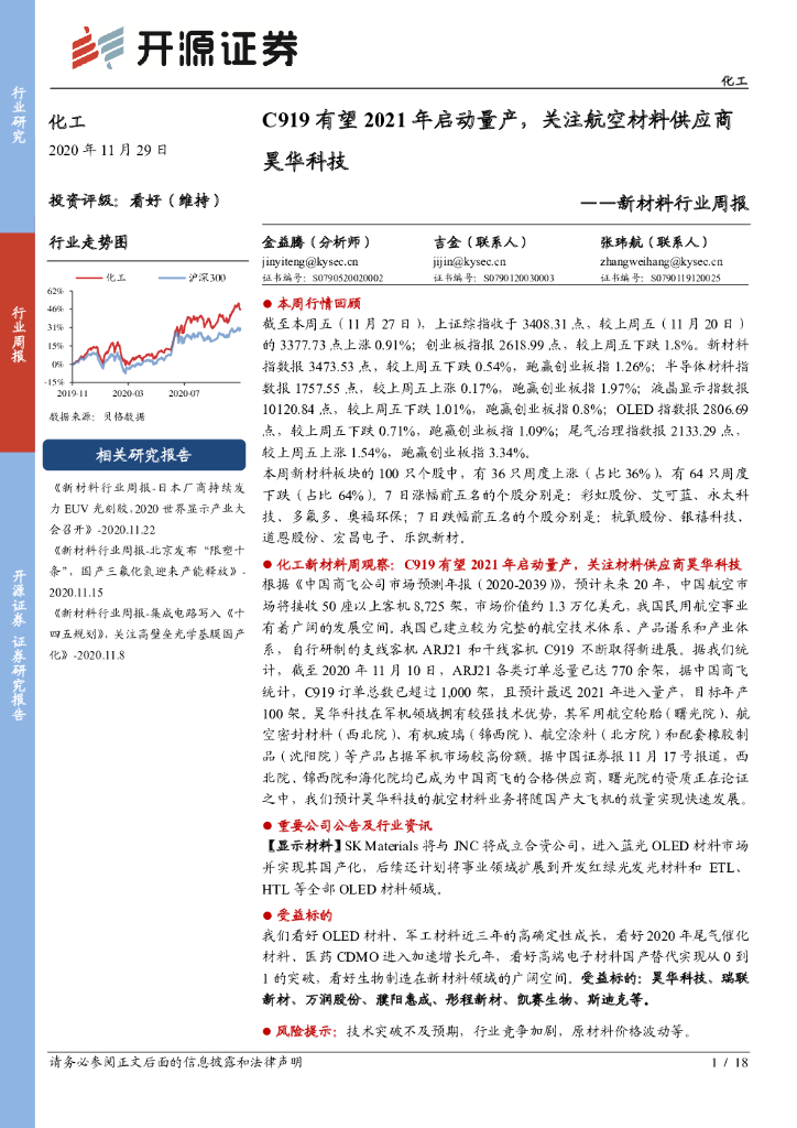 开源证券:新材料行业周报:C919有望2021年启动量产,关注航空材料供应商昊华科技.pdf