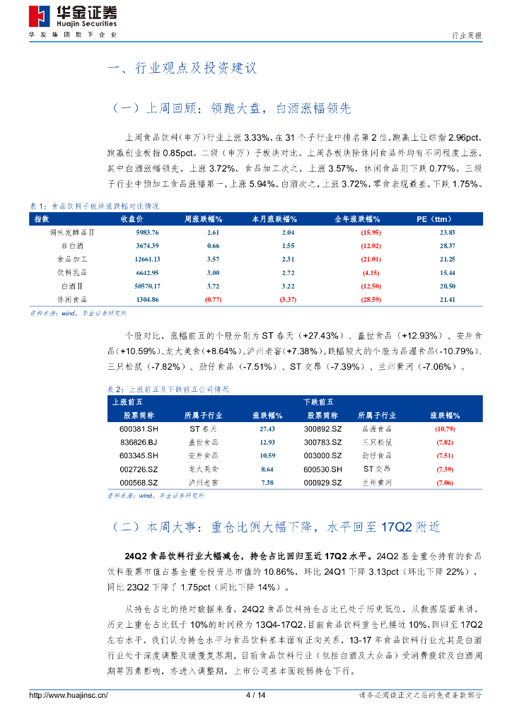 华金证券:食品饮料行业周报:重仓比例大幅下降,水平回至17Q2附近.pdf