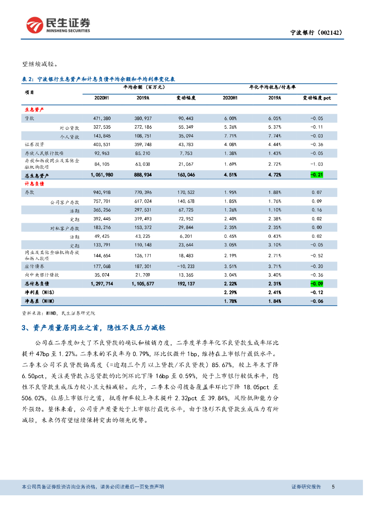 民生证券:详细解读宁波银行2020年半年报:营收业绩双位数高增,隐性不良压力减轻.pdf