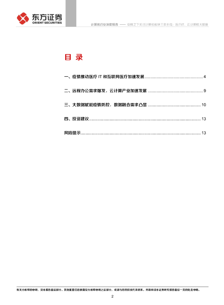 东方证券:疫情之下关注计算机板块三条主线:医疗IT、云计算和大数据.pdf