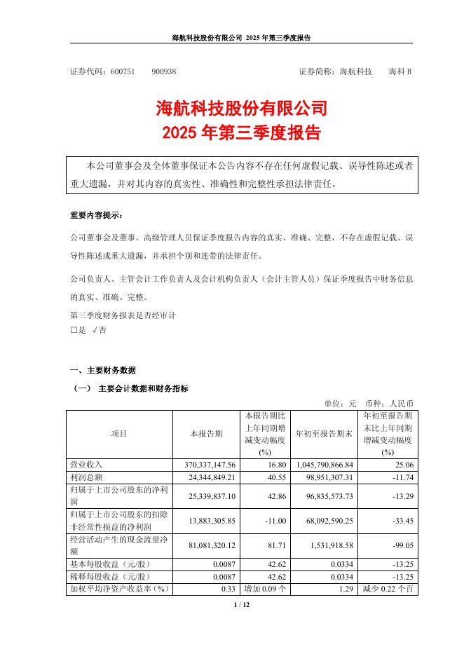 600751-海航科技:海航科技股份有限公司2025年第三季度报告.pdf