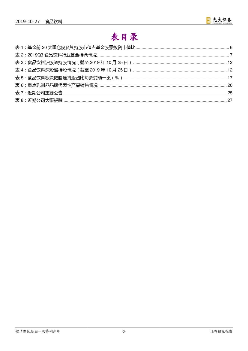 光大证券:光大食品饮料行业周报:19Q3公募基金配置食品饮料跟踪:板块持仓比重环比略有下降.pdf