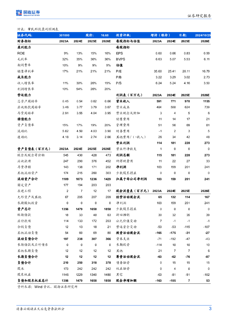 国海证券:肇民科技(301000)-2024年Q3季报点评:2024年Q3归母净利润同比高增,人形机器人业务未来可期.pdf